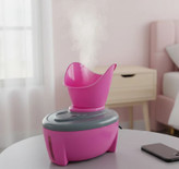 - بخار گرم بهطور ملایم از دستگاه خارج میشود، صورت خود را در فاصله مناسبی از دستگاه نگه دارید تا از بخار بهرهمند شوید.