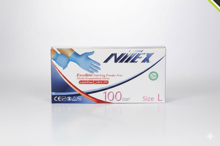 دستکش نیتریل نیتکس اولین دستکش معاینه بدون پودر تولید شده در ایران و خاورمیانه می باشد که به خاطر نداشتن پودر، هیچ گونه حساسیت پوستی ایجاد نمی کند و از لاستیک طبیعی تولید شده است این محصول کاملاً بهداشتی می باشد که از انتقال آلودگی در موارد مختلف همچون معاینه پزشکی، کار با مواد صنعتی و آزمایشگاهی جلوگیری می کند. طراحی ویژه ای که برای این دستکش در نظر گرفته شده است پوشش آن را راحت تر کرده است و کاربر به هنگام پوشیدن آن می تواند چالاکی خود را حین کار حفظ نماید همچنین از مقاومت بالایی در برابر مواد شیمیایی و خورنده همچون مواد نفتی و صنعتی برخوردار می باشد به همین دلیل طول عمر بالایی دارد.