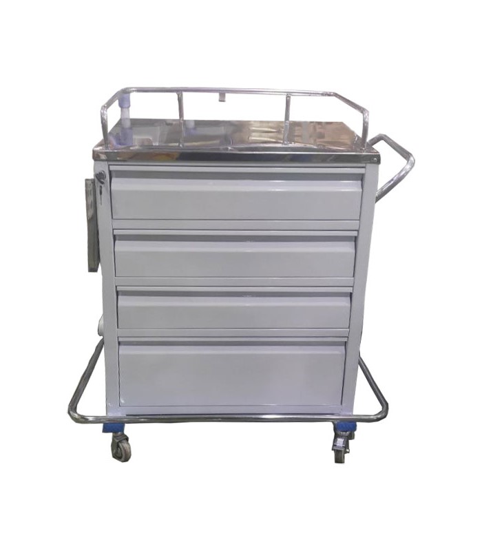 در این قسمت قصد داریم یکی از ترالی های اورژانس که دارای 4 کشو است را به شما عزیزان معرفی کنیم که از آن با نام ترالی اورژانس 4 کشو یاد می شود شرکت های متنوع و گوناگونی در جهت تولید این نوع ترالی به فعالیت مشغول هستند و توانسته اند ترالی های با کیفیتی را عرضه نمایند همان طور که می دانیم ترالی تمامی ملزومات پزشکی و داروهای حیاتی و اورژانسی را به همراه دارد که در موارد اضطراری آن را به بالین بیمار قلبی ریوی حاضر کرده و مورد استفاده قرار می دهند