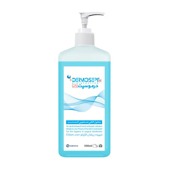 محلول ضدعفونی کننده دست درموسپت حجم 500 میلی لیتر