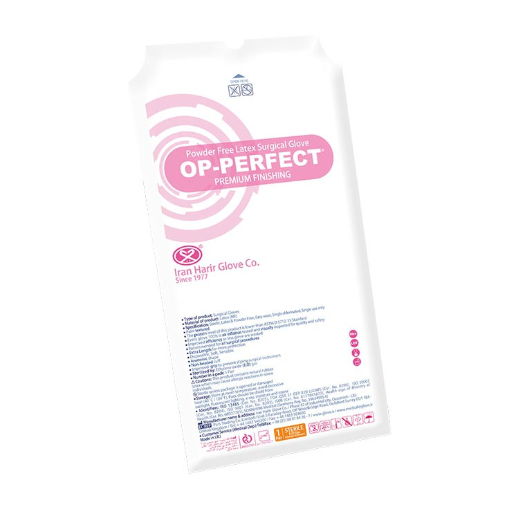 دستکش جراحی لاتکس بدون پودر Op-Perfect Premium ساخت شرکت دستکش حریر ایران می باشد. برند اوپی پرفکت حریر از واژه Operation به معنای عملکرد که مخفف آن OP است و واژه Perfect به معنای عالی تشکیل شده است که معنای عملکرد عالی را می رساند. این دستکس ساق بلند است و دارای بافت ریز ضد لغزش می باشد. دستکش جراحی لاتکس بدون پودر مدل اوپی پرفکت پريميوم با گاز اتیلن اکساید استریل شده است و یکبار مصرف است و برای جراحی های مختلف قابل استفاده می باشد. دستکش جراحی لاتکس برند حریر در سایزهای 6/5 ، 7 ، 7/5 ، 8 و 8/5 با مناسب ترین قیمت توسط فروشگاه اینترنتی دنتی پارس به فروش می رسد.